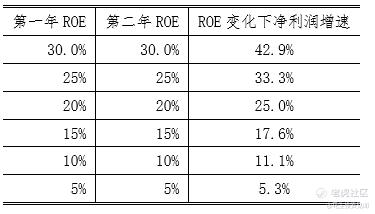 有些人觉得ROE只反应一年的静态情况,并没有反应公司的成长性,我认为这是一个十分错误和无知的看法,由于公司没有分红,每年赚取的利润增厚了净资产(股东权益),为了保持ROE稳定不变,那么公司的净利润一定要有增长,如下表,如果公司想维持30%的ROE,对应的净利润增速要高达43%;而如果要维持25%的ROE,就需要33%的净利润增速。