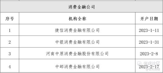 据银登中心公布的已开立不良贷款转让业务账户机构统计表显示,截至2023年2月20日,已有捷信消费金融、中银消费金融、中原消费金融、中邮消费金融相继开立不良贷款转让业务账户。