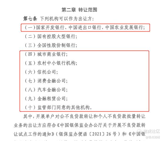2023年1月18日,银登中心印发了最新的《银行业信贷资产登记流转中心不良贷款转让业务规则》,对转让资产范围、参与机构等内容进行了重点修订和完善,并废止了原试行业务规则,出让方扩大到了政策性银行、城商行、农村中小银行机构,以及信托公司、消费金融公司、汽车金融公司、金融租赁公司等。