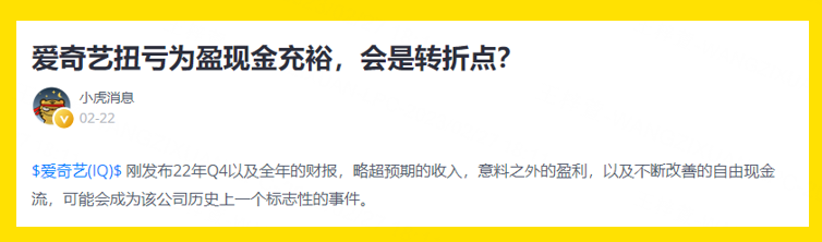让我们以@小虎消息 中的文章为例。 在《爱奇艺扭亏为盈现金充裕,会是转折点?》一文中,作者利用这些技巧使文章看起来条理清晰。