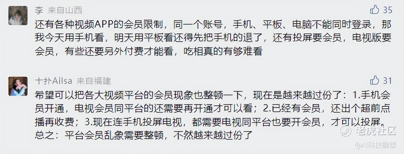 从社交平台网友的吐槽可知,各种视频APP的会员存在同账户登录限制,同一个账号,手机、平板、电脑不能同时登录。
