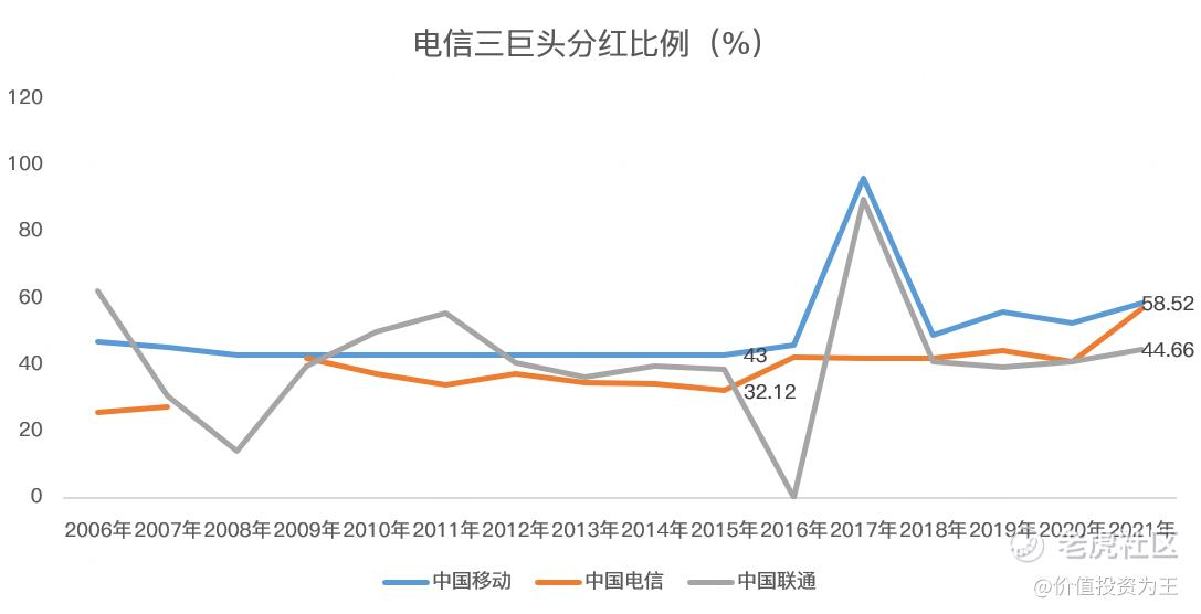 除了成长性得到恢复之外,运营商也加大了分红的力度,中国移动由2015年前43%的水平提升至2021年时的58.5%,并承诺A股上市后三年内的分红比例将提高至70%;中国电信的情况和中国移动相似,亦将分红比例计划提升至70%: