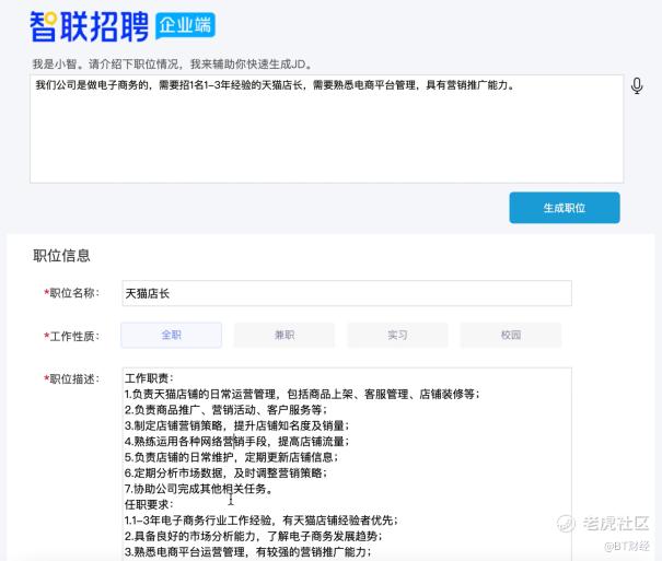 当下,各行各业都在思考AIGC如何应用,思考怎样通过它迭代产品、升级服务,而智联用它来帮助“招人、找工作”,相比于外界担忧“AI抢工作”的顾虑,这种选择更像是“用魔法打败魔法”。