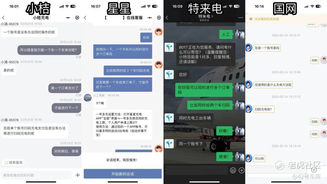 除去占位因素,部分充电软件、小程序是不支持同时进行多个订单的。经过我们的查询,小桔充电、加电 App 不可同时进行多个订单,星星充电、特来电最多同时进行 3 个订单,国家电网的 e 充电则无数量上的限制。所以高功率不挑桩,但是手机会挑桩。好在绝大部分的主流充电品牌都支持多个订单。