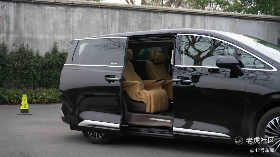 车身侧面标配了双电动门,值得注意的是 EV 版在进行双枪充电的过程中,后排的两个电动门均无法打开。所以在充电前,后排乘客有下车需求的话要提前下车并带好随身物品。因为当车辆开始双枪充电,你再想拿取后排的物品是比较困难的。