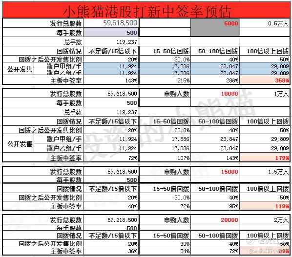 关于中签率方面,估计这次公开配售不会超过15倍回拨,按照5000人来参与预估一下,一手中签率在100%,按照10000人来参与预估一下,一手中签率在72%,就目前的行情而言,7000人差不多了,大概率应该还是百分百中签。