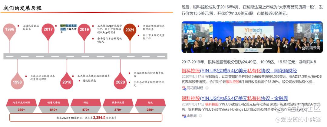 这里也简单聊聊九方财富和我们港股打新圈粉丝们的关系哈,母公司是银科控股集团,2016年的时候还去美股纳斯达克上市了。不过2020年私有化了。九方财富也是科控股集团下面的。