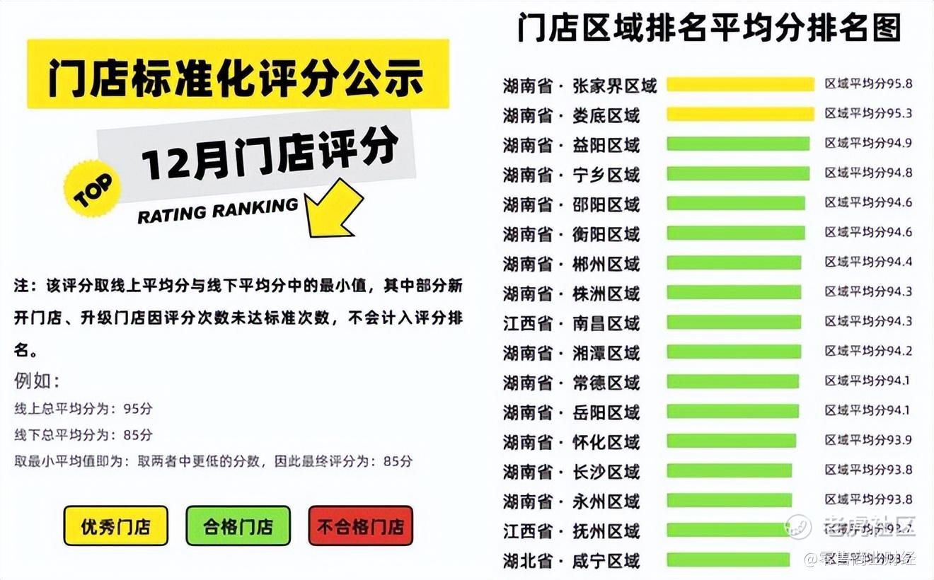 据官方招商资料显示,门店评分95以上是优秀、94-90为合格、89以下不合格。