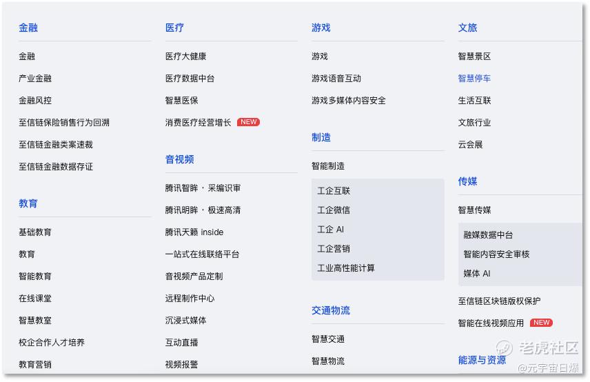从腾讯云官网可见,其当前提供的云服务涵盖了金融、医疗、游戏、文旅、教育、制造等多个行业以及多场景。而在区块链领域,它也有一些“不涉币”的解决方案,包括数字身份标识、病例数据流转、终端可信上链等。