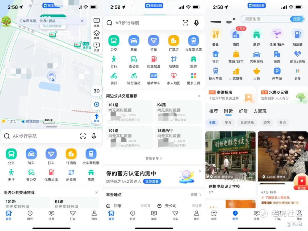 现在,用户打开高德APP,可以看到APP首页一半以上的位置留给了地图,剩下的版块被订酒店、订票、旅游等本地生活栏目占领。向下滑动,用户则能看到高德基于地理位置推荐的吃喝玩乐、春季游玩精选等栏目。在最下方的选项栏中,“附近”页面也为美食、酒店、银行、医院等本地生活服务入口。