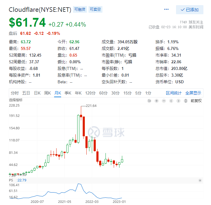 - 尔维斯肌肤·2023-02-24Cloudflare这家公司看着可以做空1举报
