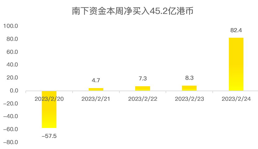 南向资金本周继续抄底港股,周五一天净买入82.4亿,创近日来新高: