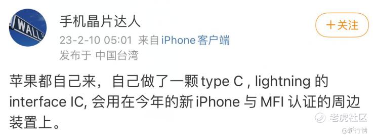 二是据数码博主@手机晶片达人爆料:iPhone 15的Type-C接口是苹果自己做的,并且苹果将会在这一接口加入一颗Type-C&Lightning接口interface IC进行加密处理,用于今年的新iPhone与MFi认证的周边装置上。
