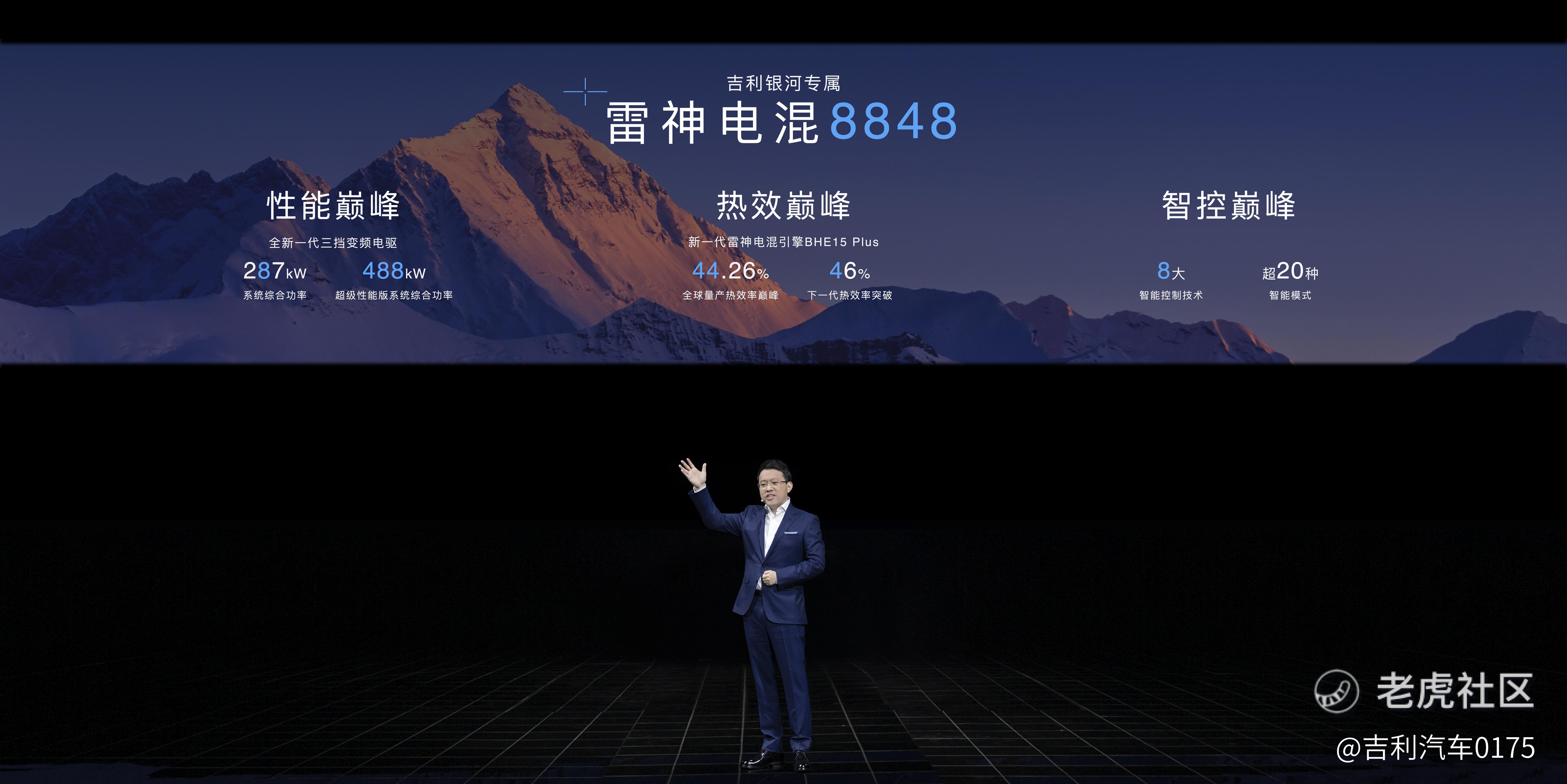 热效、性能、智控均实现显著升级进化的雷神电混8848,创造了“电混技术”的三大价值新巅峰。在热效方面,雷神电混8848搭载的新一代雷神电混引擎B-Plus,创下了44.26%的量产巅峰热效率,而且下一代热效率突破46%的雷神电混引擎已处于验证阶段。在性能方面,雷神电混8848“三挡变频电驱”再度进化,是全球首个实现P1+P2双电机超频驱动的智能电驱,两驱综合功率达到287kW,后续还将发布综合功率达到488kW的超级性能版本。智控方面,雷神电混8848行业首发预测性能量管理系统,节能率最高可提升15%。新增的智能健康管理功能,时刻保障电混系统安全运行。