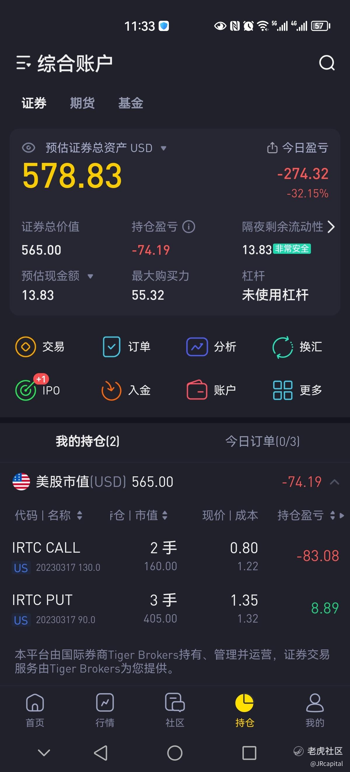 发展趋势和心态已经不了,怎么做都是错的。$IRTC 20230317 130.0 CALL$ $IRTC 20230317 130.0 CALL$ $IRTC 20230317 90.0 PUT$ $IRTC 20230317 90.0 PUT$ $道琼斯(.DJI)$ $标普500ETF(SPY)$ $纳指ETF(QQQ)$