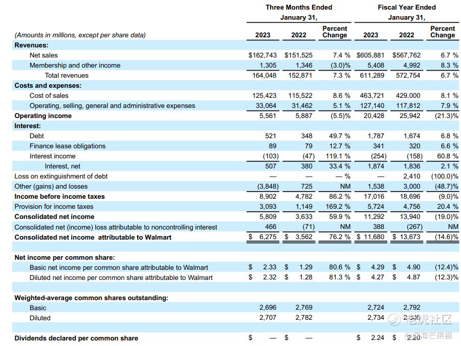 从所披露的数据看,沃尔玛(WMT)的Q4业绩是相当不错的,那为什么股价会跌呢?猫猫分析一下你就明白了。