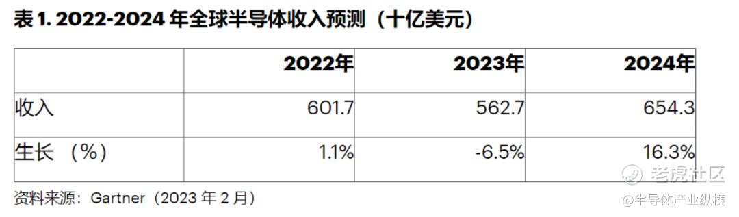 鉴于 Gartner 预计到 2023 年半导体库存指数将保持在盈余区内,这将给芯片定价带来压力并导致市场放缓。Gartner 预测 2023 年全球半导体总收入将下降 6.5% 至 5627 亿美元。预计该市场将在 2024 年复苏,收入增长 16.3%,达到 6543 亿美元(见表 1)。