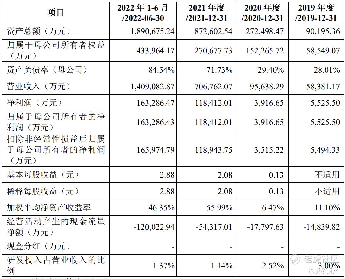 2022年上半年,湖南裕能的营收为140.91亿元,净利润为16.33亿元,扣非后净利润16.60亿元。截至2022年6月30日,湖南裕能的资产总额约为189.7亿元,归属于母公司所有者权益约为43.40亿元。