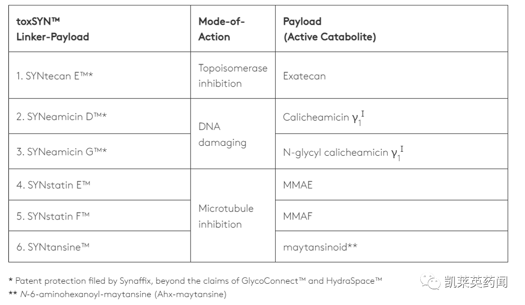 该技术是Synaffix推出的新的高效力细胞毒性ADC有效载荷平台, 跨越多个具有不同MOA(作用机制)的毒素类别,在ADC领域广为人知,toxSYN由6种不同类型的有效载荷连接子组成,所有的有效载荷都经过了临床验证,具有众所周知的疗效和安全性,可供药企开发不同类型的ADC产品。