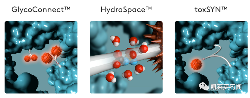 Synaffix特有的下一代ADC技术平台,包括酶法重塑定点偶联技术GlycoConnect、高极性内含子技术HydraSpace和高效载荷平台toxSYN。