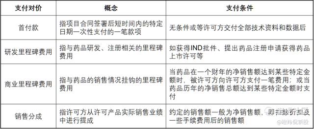 交易结构中,首先需要关注授权地区市场广阔程度,例如该地区人口和药物适应症的潜在患者人群;其次便是支付对价,包括首付款、里程碑费用(又分为研发里程碑和商业里程碑费用)和销售分成。