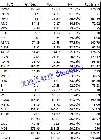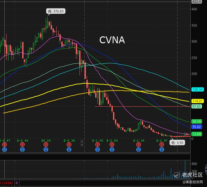 意味着,如果今年继续是大牛市, $Stitch Fix Inc.(SFIX)$ 不需要反弹到113美元,反弹到一半,60美元,那从现在5美元到60美元,也有12倍的上涨空间。这是其中一个案例。还有 $Carvana Co.(CVNA)$