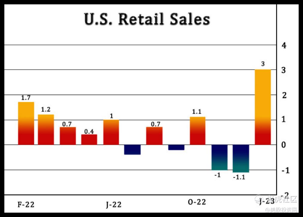 美股星期三再次震荡走高,美国商务部公布,1月份零售销售强于预期。
