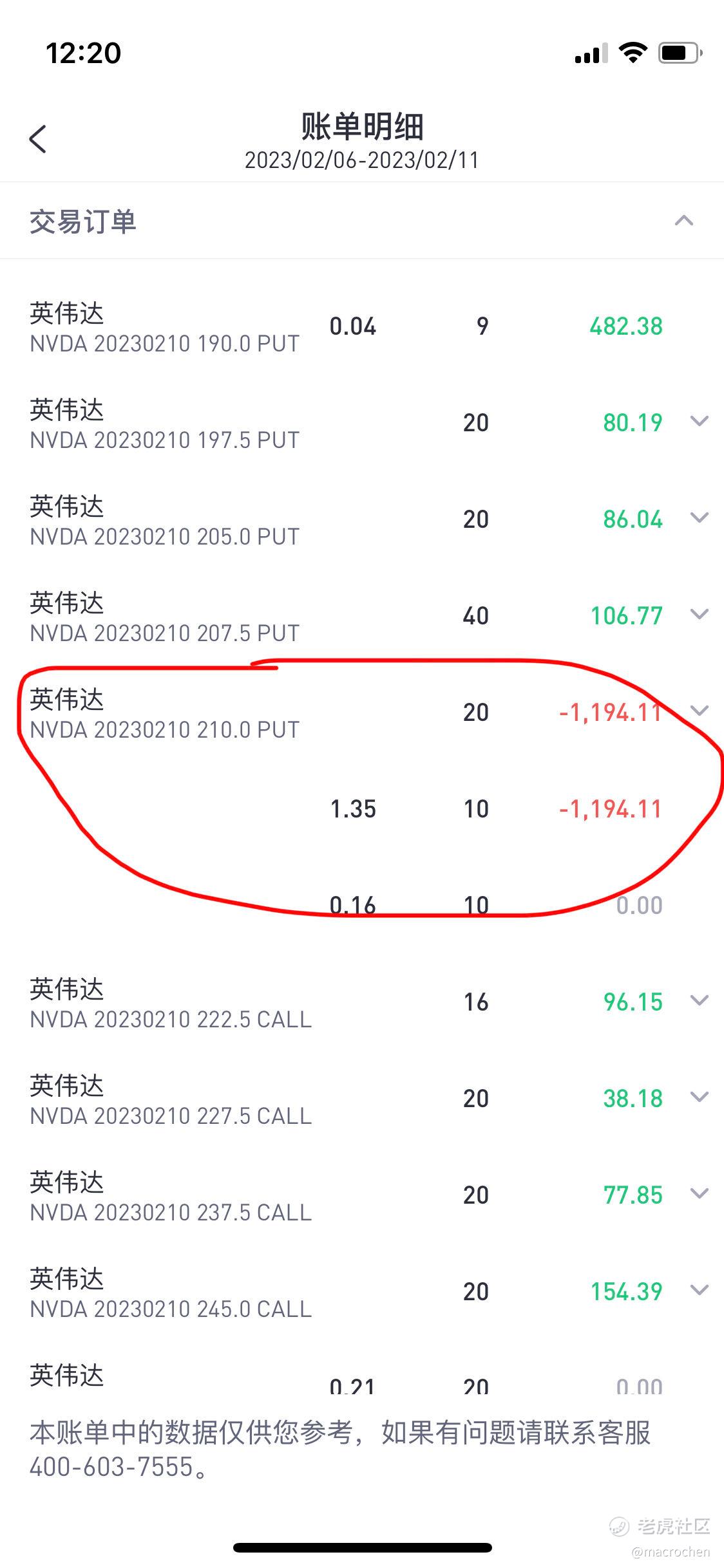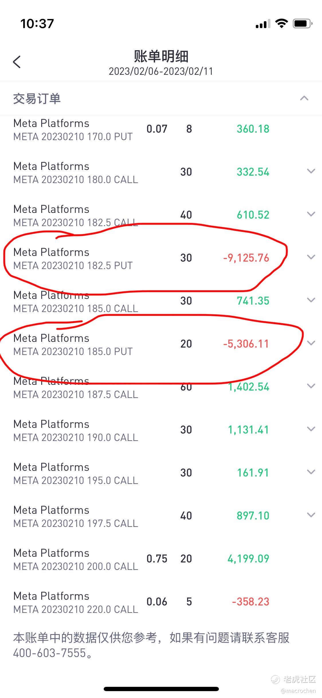 注: 虽然账面上买卖差值只有3000多刀亏损(实亏), 其中有很大一部分做了roll over, 将亏损移到下一周(浮亏)