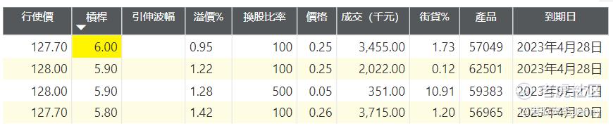 衍生品市场方面,美团牛证成交活跃区位于收回价127.5元。收回价127.5-129.9水平的牛证产品有5只,杠杆在5.8倍至6倍,59383及56965杠杆相对较高,杠杆分别有5.9倍及5.8倍。