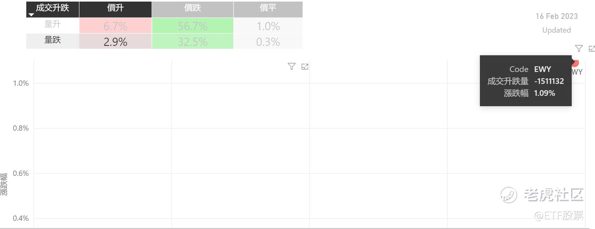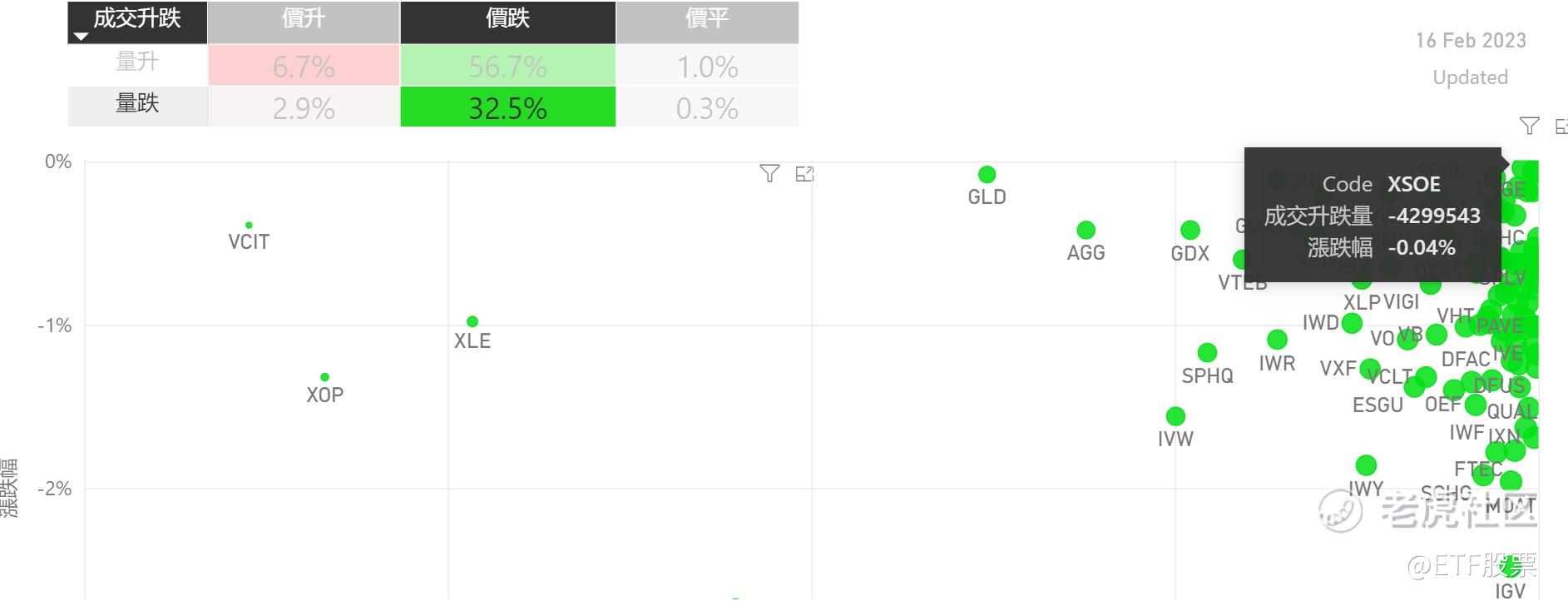 在2月16日的美股主要300只ETF交易品种中,录得有10%的ETF交易品种的ETF价格上升;尽管录得只有少数的ETF价格录得上升,不过仍有3%的ETF产品,虽然价格上升,成交额却下跌。