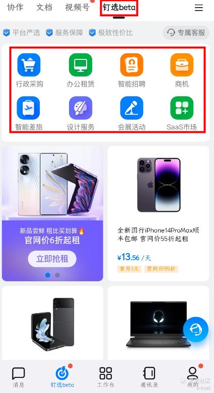 近日,钉钉孵化的企业服务频道已经正式上线,覆盖行政采购、办公租赁、智能招聘、商机、智能差旅、设计服务、会展活动与SaaS应用等八个业务板块。