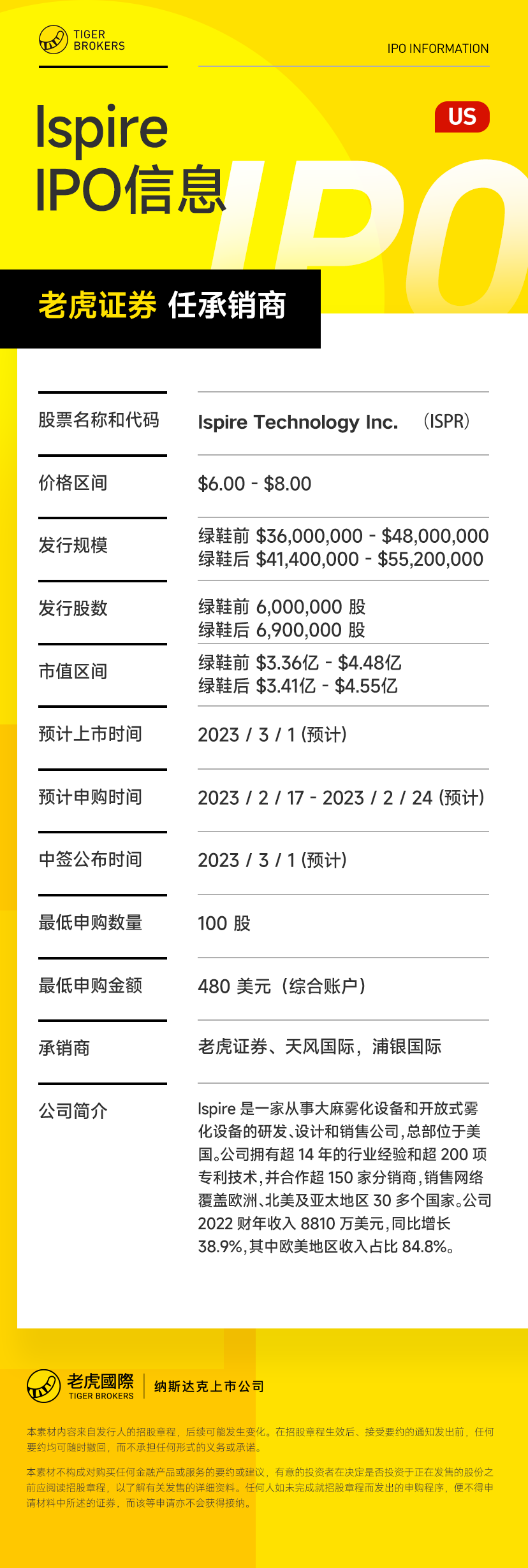 IPO信息 | Ispire冲刺美股IPO,雾化设备研发设计及销售公司