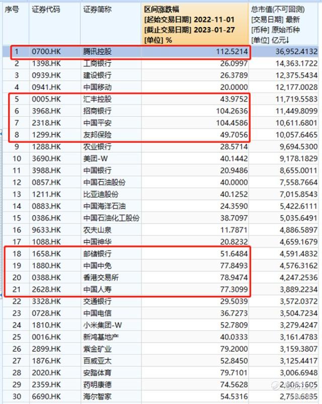•权重股超预期反弹,腾讯翻倍、汇丰、招行、平安、友邦、港交所、人寿等都甚至翻倍