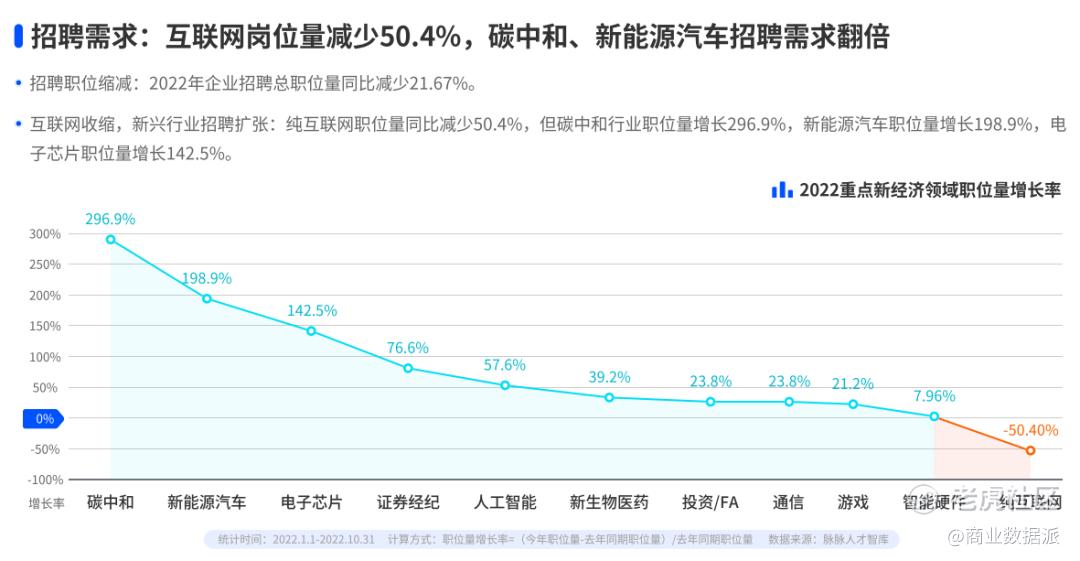 杨安告诉商业数据派,猎头的成单率高低与否,不仅与猎头本身的工作能力、人脉资源有关,还很大程度受到行业需求变化的影响。“去年,用人需求最高的是芯片行业,这一行业内几乎所有岗位招聘需求都出现大幅增长”,对于深耕芯片领域的猎头来说,是一个很好的职业上升期。