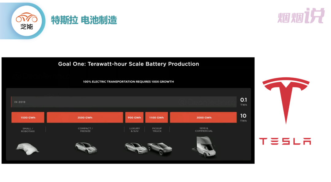 特斯拉还提出在电动车的生产上,到2030年其电动车年产量要达到2000万辆左右,而大众和丰田等汽车制造商目前的年产量约为1000万辆。而在电池的生产上,马斯克则表示特斯拉要将自身电池的产能扩展到每年1000GWh。