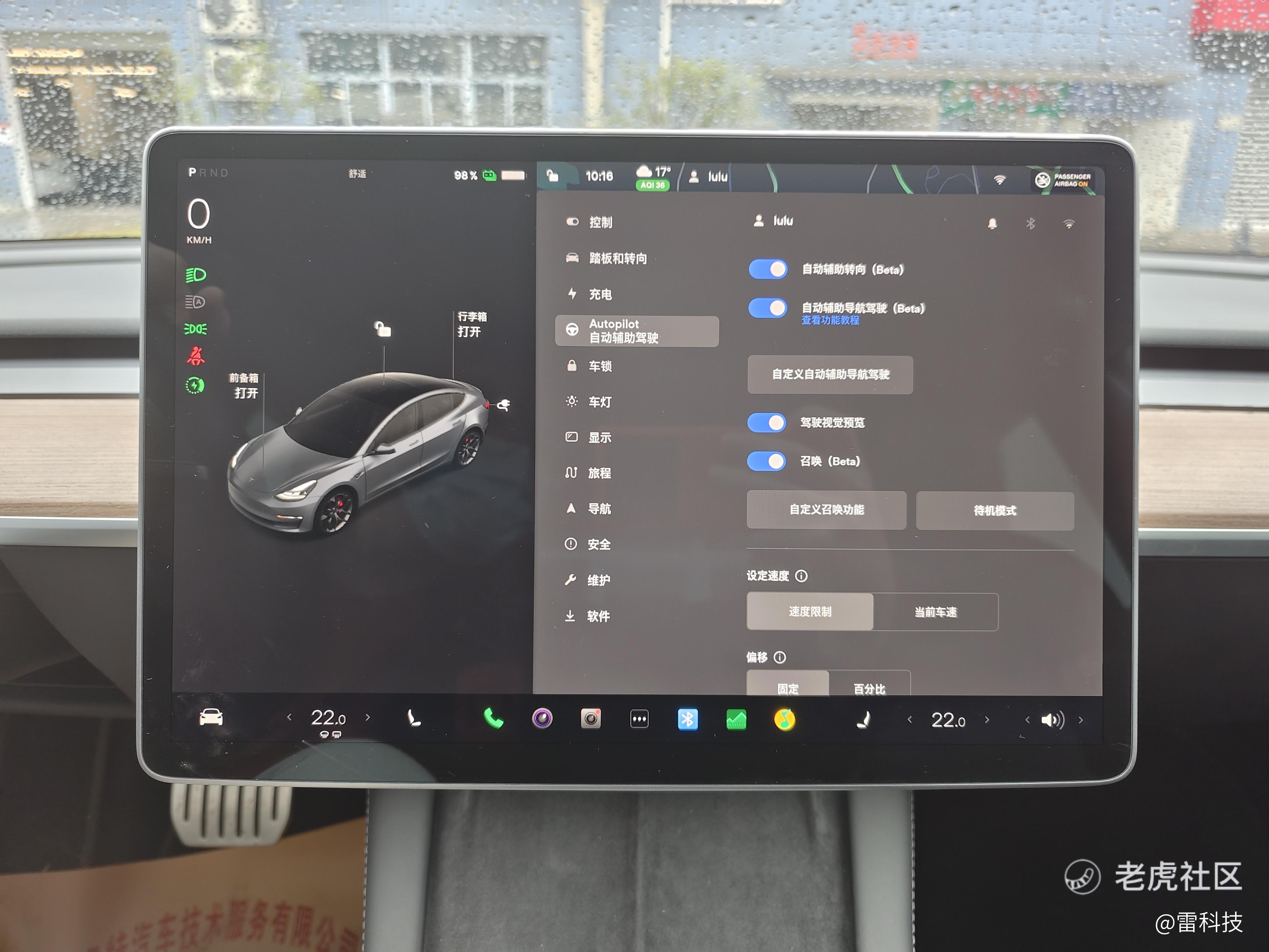 除此之外,特斯拉M3P令人称道的还有出色的辅助驾驶能力,在使用基础AP的情况下M3P精确的路面标线识别能力、周遭车辆和物件识别能力和自动变道能力均给小雷留下了深刻的印象,在长途旅程中一定程度上降低了我们的驾驶精神压力。