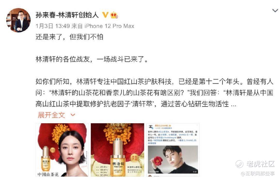 国货硬刚国际大牌的典型案例是22年1月,香奈儿推出山茶花护肤产品后切入了林清轩耕耘数十年的红山茶花护肤领域,对此林清轩创始人不得不下“迎战书”,措手不及的慌乱,是一个国货品牌对消费者心智没有信心的体现。