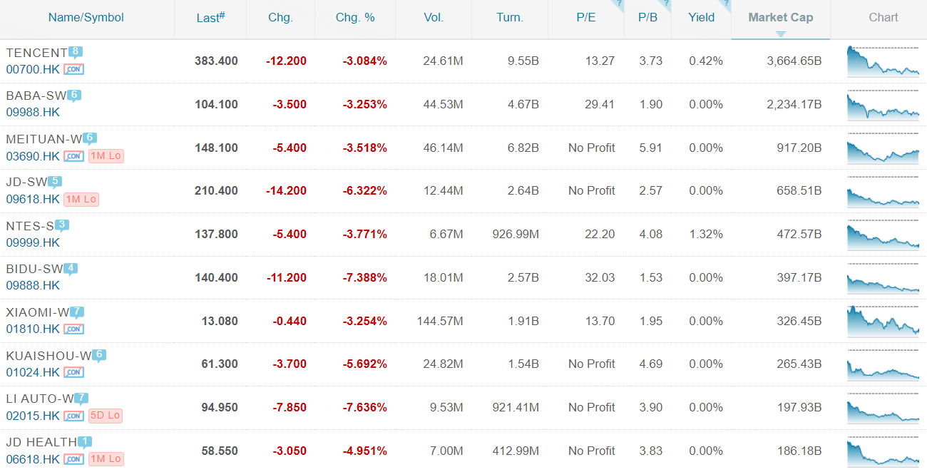 $恒生科技指数(HSTECH)$ 市值 Top 10排行:$腾讯控股(00700)$ , $阿里巴巴-SW(09988)$ , $美团-W(03690)$ , $京东集团-SW(09618)$ ,$网易-S(09999)$ ,$百度集团-SW(09888)$ ,$小米集团-W(01810)$ ,$快手-W(01024)$ ,$理想汽车-W(02015)$ ,$京东健康(06618)$