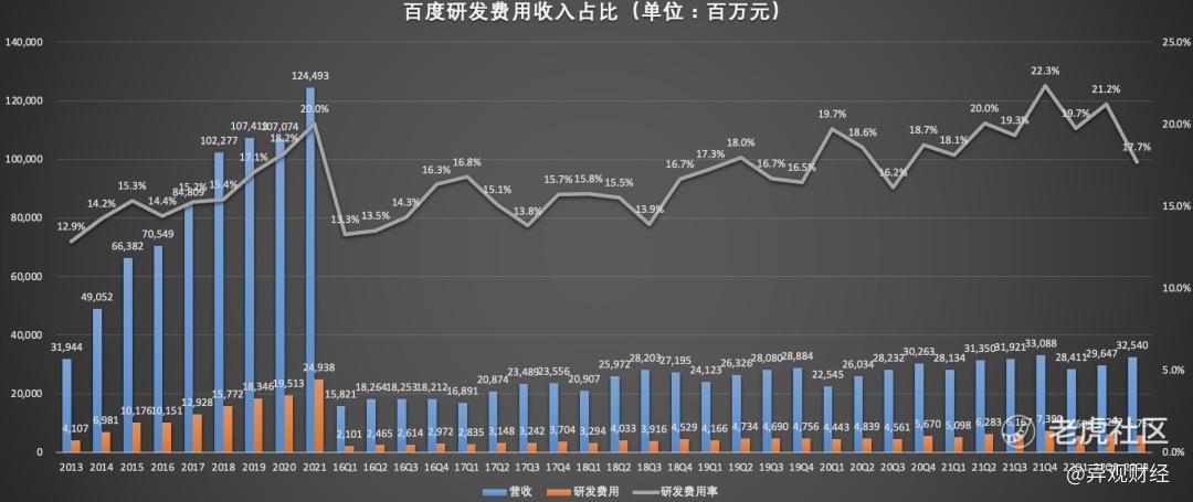 而百度人工智能强,是因为百度持续的强大研发投入和人才培养。百度一直坚持压强式、马拉松式的研发投入。近十年累计研发投入超过1000亿元。2022年第三季度,百度研发投入为58亿元,其中核心研发投入占核心收入比例连8个季度超过20%。三年前,百度宣布五年内为社会培养500万AI人才,目前已培养了超过 300万。