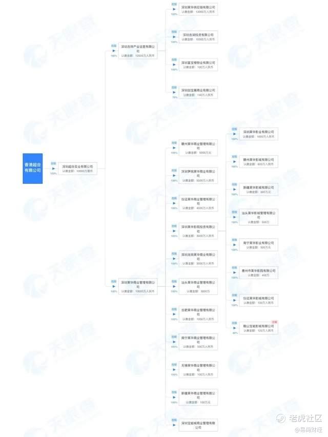 例如,姚建辉用“香港超合有限公司”控制着莱华系以及吉祥产业运营有限公司,进而控制了至少24家企业,掌控着专业市场、影视、物业管理等重要板块。其中包括由深圳莱华影院投资有限公司投资的8家地方影城公司。