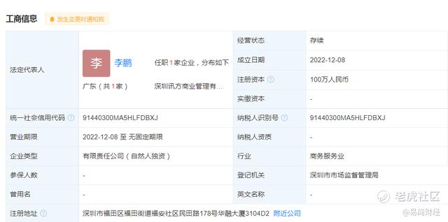 天眼查资料显示,深圳讯方成立于2022年12月8日,注册资本100万元,法定代表人为**。但除此之外,天眼查再无更多实控人关联信息。