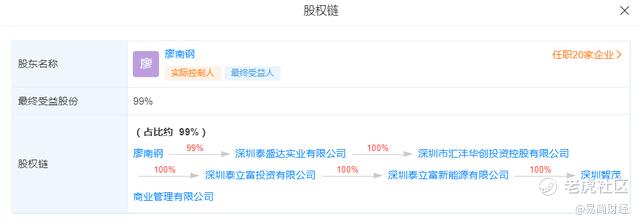 天眼查显示,2022年9月8日,深圳泰立富增资3.28亿元,持有深圳智茂99.7%的股权。同时,后者的法定代表人由陈奕宽变更为廖南钢。深圳泰立富成立于2022年8月31日,再往上追溯,廖南钢透过五层持股,间接持有深圳智茂98.7%的股权。