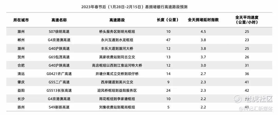 预计春节后全国高速易拥堵路段主要是:S07**高速滁州段(桥头服务区到明光枢纽),全天拥堵延时指数约为4.5,全天平均车速约25公里/小时,其次是G4京港澳高速郴州段,G40沪陕高速滁州段等。建议行驶到以下路段的车主时刻注意路况,及时躲避拥堵。