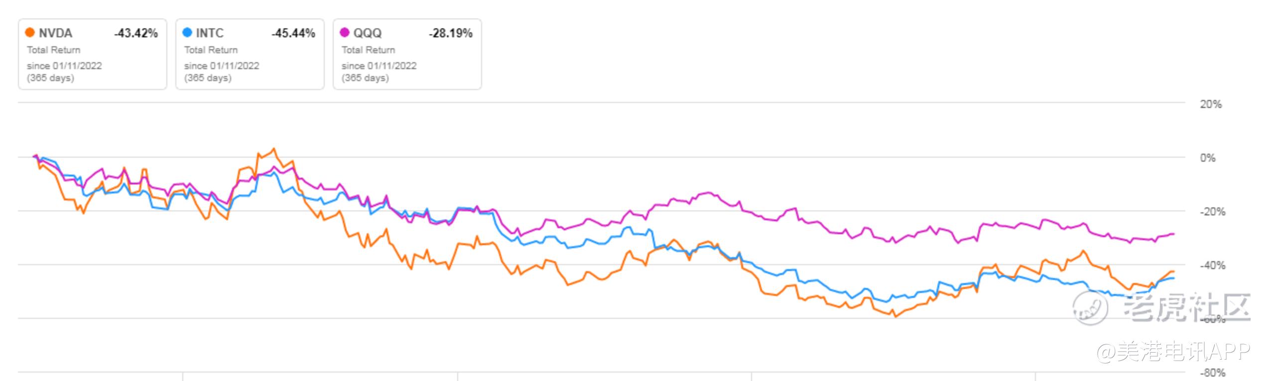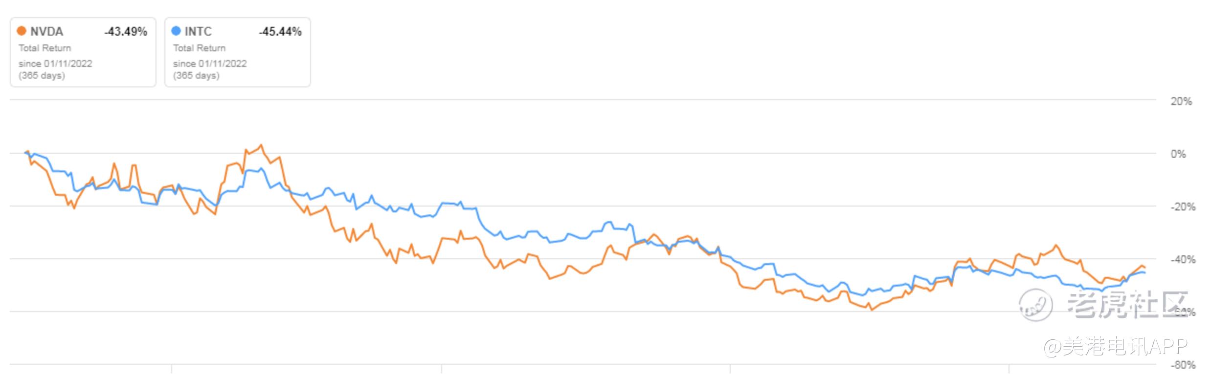- 去年,英伟达和英特尔的股价均跌超40% 。
