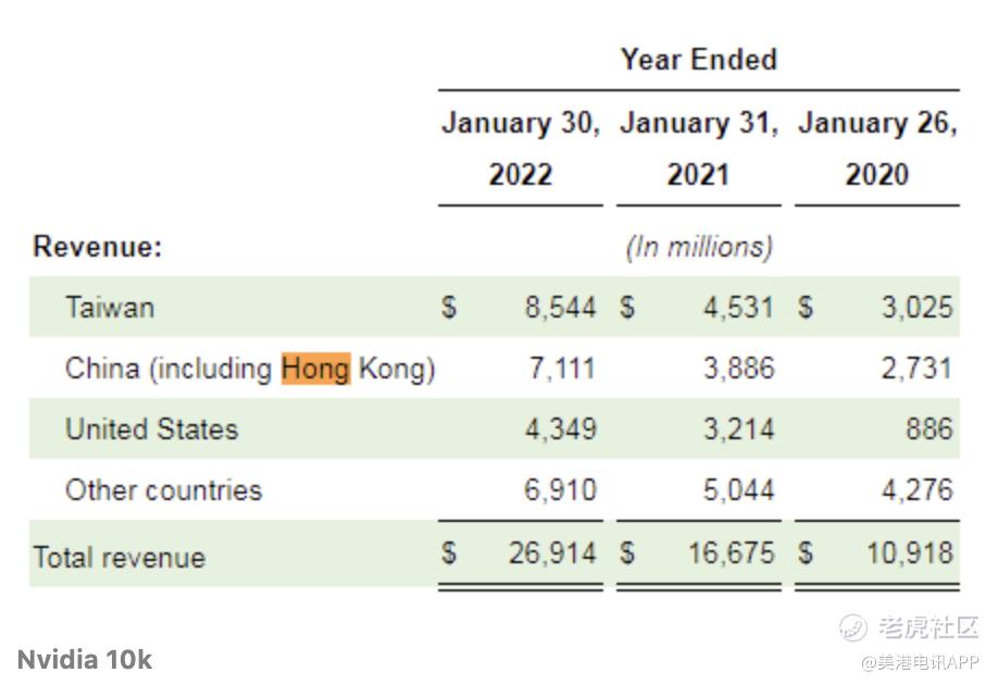 另一潜在差异在于英伟达的大部分收入来自中国大陆和香港。