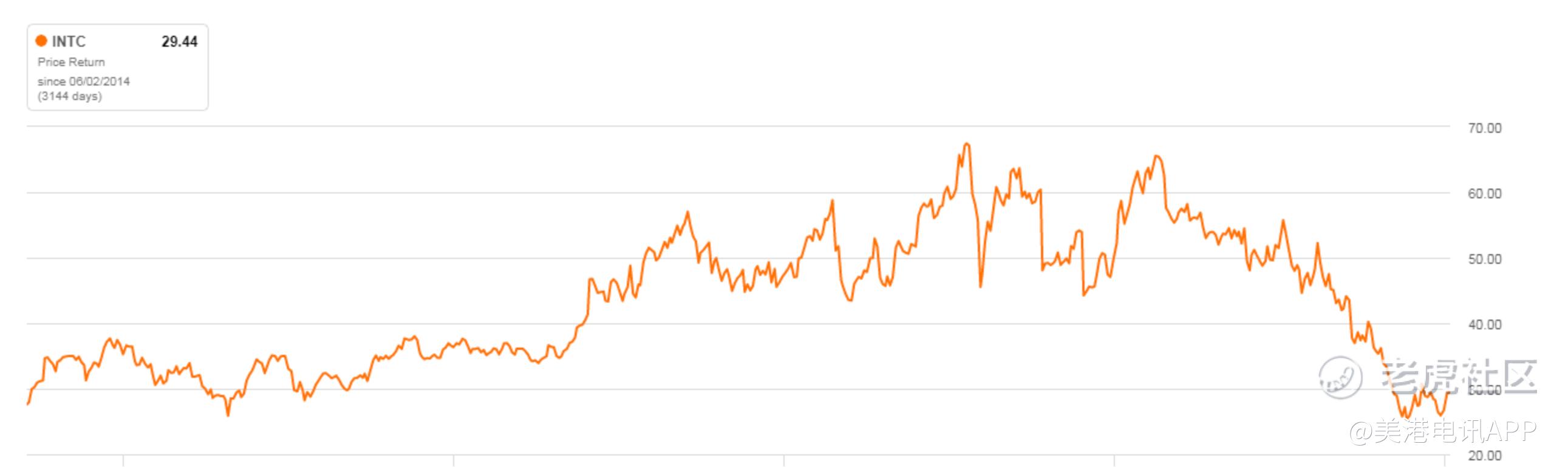 英特尔股价目前正处于2014年以来的最低水平,在这些低点之间,股价只要能回到以前的水平,资本收益就可能很大,更不用说涨到更高的水平。