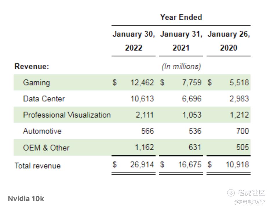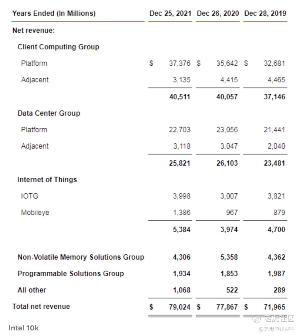 英伟达也有“游戏业务”,英特尔无此业务,又或者是埋没在像客户端计算事业部这样的大业务中。
