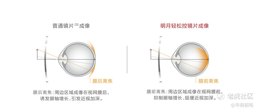 普通近视镜只能把中心黄斑区对准了,但视网膜上下周边还是被拉远的,时间长了会诱发眼轴增长加重近视度数。