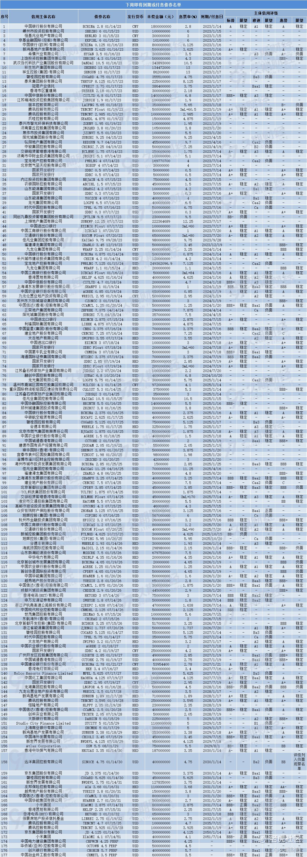 下周中资离岸债发行主体付息/到期一览表:碧桂园、腾讯控股等