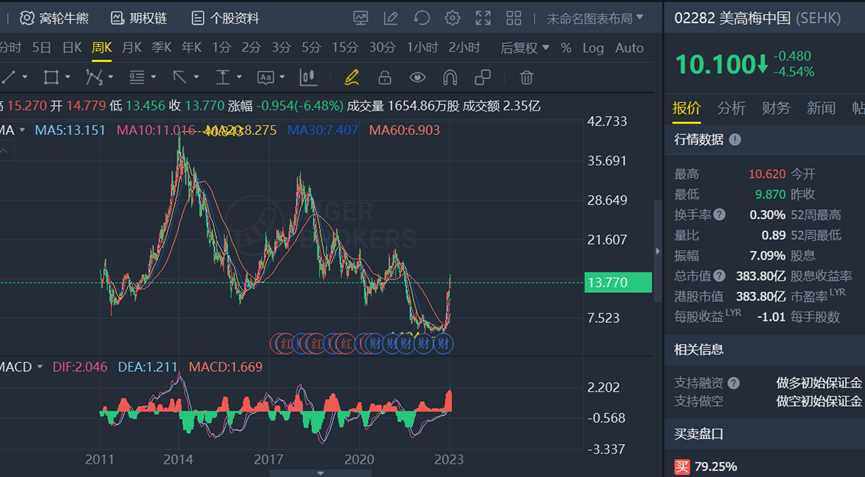 - 2019年12月31日,美高梅股价12.61, 2023年1月17日收盘价10.1,股价相对下跌2%。$美高梅中国(02282)$